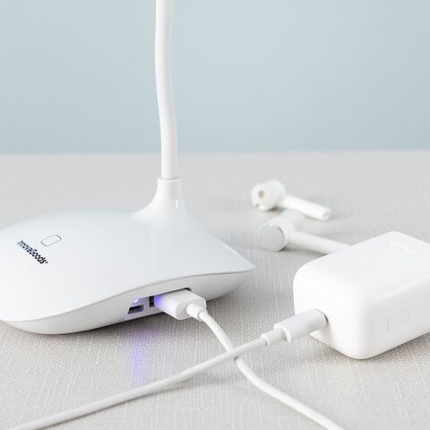Լիցքավորվող և փոխադրելի LED սեղանի լամպ՝ սենսորային կառավարմամբ: Շատ հեշտ և գործնական է ամենուր տանելու համար՝ առանց վարդակից անհրաժեշտության: Այն ունի 3 ինտենսիվության մակարդակ (ցածր-միջին-բարձր), չսահող հիմք, իսկ ճկուն բռնակը թույլ է տալիս այն հեշտությամբ տեղադրել ցանկալի բարձրության և դիրքի վրա: Բացի այդ, երբ լամպը չի օգտագործվում, այն կարող է օգտագործվել որպես փոքր սարքերի (օրինակ՝ ականջակալների և այլն) համար նախատեսված էներգախնայող բանկ։
