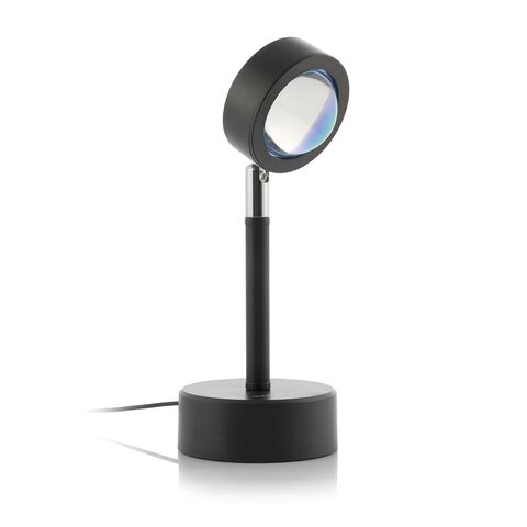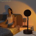 Օրիգինալ պրոյեկտոր լամպ՝ մայրամուտի էֆեկտով, որը արձակում է շատ մեղմ և հանգստացնող տաք LED լույս՝ պրոյեկտորելով նարնջագույն գունդ, նման արևի արտացոլմանը մայրամուտի ժամանակ: Իր բազմակողմանիության շնորհիվ այն կատարյալ է բազմաթիվ տարբեր տարածքներ լուսավորելու համար: Այն ընդօրինակում է տաք մայրամուտը՝ ստեղծելով հատուկ և ռոմանտիկ մթնոլորտ ննջասենյակում, հյուրասենյակում, աշխատասենյակում և այլն: Այն նաև իդեալական է որպես գիշերային լամպ երեխաների համար կամ որպես լուսանկարչական լամպ: Այս էներգախնայող բազմադիրք լամպն ունի պտտվող գլխիկ՝ կարգավորվող թեքությամբ, որպեսզի լույսը տարբեր անկյուններից պրոյեկտի առաստաղի, պատի և այլնի վրա՝ ըստ ցանկության ցանկացած պահի և կախված լուսավորության էֆեկտից: Ելքի չափը փոքրացնելու կամ մեծացնելու համար պարզապես լամպը տեղափոխեք (առաստաղից կամ պատից ավելի մոտ կամ ավելի հեռու): Այն սնուցվում է USB-ով, և USB մալուխի վրա կա մեկ միացման/անջատման կոճակ՝ այն միացնելու և անջատելու համար: Բացի այդ, այն չի տաքանում կամ չի այրվում, ինչը այն դարձնում է շատ հարմար և անվտանգ: Այն հիմնականում տան համար նախատեսված ներքին լամպ է, սակայն իր թեթև և փոխադրելի դիզայնի շնորհիվ այն կարող է հեշտությամբ օգտագործվել ամենուր՝ միացնելով այն powerbank-ին կամ այլ USB աղբյուրի, օրինակ՝ նոութբուքին։