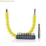 Ճկուն մագնիսական պտուտակահանի երկարացնող՝ 360° պտտմամբ, որը թույլ է տալիս պտուտակել կամ պտուտակահան անել դժվարամատչելի վայրերում կամ փոքր, սահմանափակ տարածքներում՝ ապահովելով ավելի հարմարավետ դիրքեր աշխատանքի ժամանակ: Այն կարող է օգտագործվել էլեկտրական կամ ձեռքի գործիքների հետ (պտուտակահան, հորատիչ...): Բացի այդ, այն ներառում է մի քանի պարագաներ՝ ինքնուրույն աշխատանքը հեշտացնելու և ավելի արդյունավետ դարձնելու համար: Գլխիկի պահոցը հիանալի է ներառված 10 գլխիկները պահելու և կարգի բերելու համար (3 հարթ գլխիկ՝ 4-5-6 տիպի, 3 գլխիկ՝ PH1-PH2-PH3 տիպի, 2 գլխիկ՝ PZ1-PZ2 տիպի և 2 գլխիկ՝ T15-T20 տիպի): Համընդհանուր գլխիկի ադապտերը նաև մագնիսական է՝ հեշտ ամրացման և անվտանգ ամրացման համար։ Իր թեթև, ճկուն, մագնիսական և փոխադրելի դիզայնի շնորհիվ, այս երկարացնողը պարագաներով հեշտ է օգտագործել, պահել և տեղափոխել։