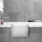 - Բազմաշերտ, ճկուն և փափուկ. այս լոգարանի գորգը ամուր և դիմացկուն է: Այն բաղկացած է 4 բարձրորակ շերտերից (իմիտացիոն կաշի, սպունգ, դիատոմիտ, ռետին): Մոխրագույն երանգներով դրա ժամանակակից, գերհարթ դիզայնը հաղորդում է մինիմալիստական և էլեգանտ տեսք: Փափուկ և հարմարավետ մակերեսը հաճելի է ոտքերի վրա: Այն նաև ճկուն է և կարող է հեշտությամբ փաթաթվել պահեստավորման համար: