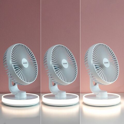 Իդեալական լիցքավորվող սեղանի օդափոխիչ՝ հաճելի անմիջական զովություն վայելելու համար: Չափազանց թեթև, այն կարելի է ամենուր տանել: Անձայն, 4 արագություն, տատանվող, LED լույս (3 ինտենսիվություն), կարգավորվող թեքություն, USB-C մալուխ ներառված է։