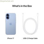 Կապույտ Apple iPhone 17-ը առաջադեմ սմարթֆոն է, որը համատեղում է նուրբ դիզայնը հզոր սարքավորումների հետ՝ ինտենսիվ, շարունակական օգտագործման համար։ Այն ունի հարթ 6.3" OLED էկրան (մոտավորապես 16 սմ)՝ 2622 x 1206 px լուծաչափով, իդեալական է մանրամասն մուլտիմեդիա բովանդակության համար, և աջակցում է HDR, HDR10 և HDR10+՝ հակադրությունն ու գույների վերարտադրությունը բարելավելու համար։ Սարքը ներառում է 6 միջուկանի A19 չիպ, որը, 8 ԳԲ օպերատիվ հիշողության հետ միասին, ապահովում է արագ աշխատանք բազմախնդրության, խաղերի և պահանջկոտ հավելվածների դեպքում: Այն առաջարկում է 256 ԳԲ ներքին հիշողություն, որը նախատեսված է բազմաթիվ լուսանկարներ, բարձր թույլտվությամբ տեսանյութեր և հավելվածներ պահելու համար՝ առանց արտաքին լուծումների անհրաժեշտության: Լուսանկարչության համար այն ներառում է 48 ՄՊ հետևի տեսախցիկ և 18 ՄՊ առջևի տեսախցիկ, որոնք ունեն HDR-ի նման հնարավորություններ՝ բարձր դինամիկ տիրույթի տեսարաններում կադրերը օպտիմալացնելու համար՝ թե՛ լուսանկարների, թե՛ տեսանյութերի համար: Դրա սենսորները ներառում են աքսելերոմետր, գիրոսկոպ, շրջակա լույսի սենսոր և մոտակայքի սենսոր, որոնք անհրաժեշտ են պայծառությունը, էկրանի կողմնորոշումը կարգավորելու և ամենօրյա փոխազդեցությունը բարելավելու համար: Երկարակեցությունն ամրապնդվում է կերամիկական վահանային ապակիով և ջրից և փոշուց դիմացկուն դիզայնով (այս շարքի համար բնորոշ պաշտպանության աստիճան), որն ապահովում է ավելի մեծ ամրություն ամենօրյա օգտագործման համար: Կապի առումով այն աջակցում է 5G, 4G, 3G, Wi‑Fi 7, Wi‑Fi-ի բազմաթիվ տեսակներ, Bluetooth, NFC և համատեղելիություն Apple Pay-ի հետ՝ հնարավորություն տալով կատարել անհպում վճարումներ և արագ միանալ ցանցերին ու պարագաներին, ինչպես նաև GPS՝ ճշգրիտ նավիգացիայի համար: Այն նաև ներառում է USB 2.0 Type‑C և EU միակցիչ՝ ցանցից լիցքավորման համար, հետևելով ժամանակակից միացման ստանդարտին: Փաթեթը լրացվում է բարձրորակ OLED էկրանով, առաջադեմ հետևի և առջևի տեսախցիկների գործառույթներով և ամբողջական սենսորային համակարգով, ստեղծելով հավասարակշռված սարք այն օգտատերերի համար, ովքեր փնտրում են ժամանակակից iPhone՝ հզոր կատարողականությամբ, կապի և դիտման հնարավորություններով։