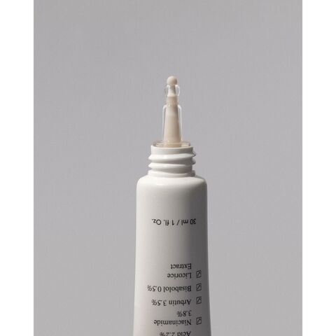Ondo Beauty 36.5-ի տրանեքսամիկ թթու և լիկորիցե մուգ միջոցը կրեմի տեսքով մուգ բծերի դեմ միջոց է, որը հատուկ մշակված է բոլոր մեծահասակների մաշկի տեսակների վրա հիպերպիգմենտացիայի և մուգ բծերի դեմ պայքարելու համար: Այս ունիսեքս արտադրանքը պարունակում է 30 մլ առաջադեմ բանաձև՝ իր լուսավորող և հանգստացնող ազդեցությամբ հայտնի բաղադրիչներով, ինչպիսիք են տրանեքսամաթթուն և քաղցրավենիքի արմատի քաղվածքը (Glycyrrhiza glabra), որոնք օգնում են տեսանելիորեն նվազեցնել առկա բծերի ինտենսիվությունը և կանխել նոր անհավասար երանգի առաջացումը: Բացի այդ, նիացինամիդը (վիտամին B3) և արբուտինը խթանում են բնական փայլը և հավասարաչափությունը՝ ամրացնելով մաշկի պաշտպանիչ շերտը և օգնելով նվազեցնել կարմրությունը: Դրա բանաձևը ներառում է պանթենոլ, բիսաբոլոլ և ալանտոին՝ ակտիվ բաղադրիչներ, որոնք ինտենսիվորեն հանգստացնում և խոնավեցնում են, բարելավելով հյուսվածքը և փափկությունը՝ առանց յուղոտ զգացողության: Կրեմը սպիտակ է, հարմարավետ հյուսվածքով, որը հեշտ է քսել առավոտյան և երեկոյան առօրյա կյանքում, և հարմար է նրանց համար, ովքեր փնտրում են արդյունավետ, նուրբ լուծում՝ շնորհիվ իր վեգան բանաձևի, որը չի պարունակում կենդանական ծագում ունեցող բաղադրիչներ: Այլ օգտակար բաղադրիչներից են՝ կակաոյի քաղվածքը, տոկոֆերոլը (վիտամին E) և սորբիտանի իզոստեարատը, որոնք ապահովում են հակաօքսիդանտներ և նպաստում մաշկի վերականգնմանը: Արտադրված է Իսպանիայում և ուշադիր մշակված՝ գրգռվածության ռիսկը նվազագույնի հասցնելու համար, այս մուգ կետերի դեմ քսուքը բավարարում է մեծահասակների մաշկի կարիքները, որոնք ցանկանում են միասնական երանգ ստանալ և լուսավորությունը բարձրացնել առաջատար բաղադրիչների միջոցով: Մի խոսքով, կոսմետիկ միջոց՝ ստեղծված նրանց համար, ովքեր փնտրում են տեսանելի, անվտանգ արդյունք մուգ բծերի դեմ, կատարելագործված բաղադրությամբ և հաճելի կիրառմամբ մաշկի խնամքի ամենօրյա ռեժիմում: