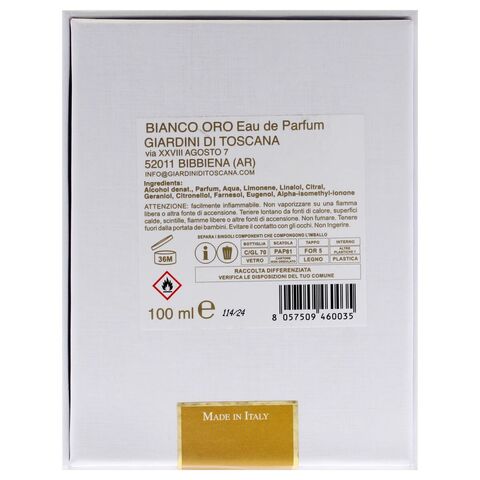 Թողեք 100% օրիգինալ ունիսեքս օծանելիք Giardini di Toscana BIANCO ORO EDP 100 մլ-ը զարմացնի ձեզ և ընդգծի ձեր կանացիությունը՝ օգտագործելով այս բացառիկ կանացի օծանելիքը՝ յուրահատուկ, անհատական բույրով։ Բացահայտեք 100% օրիգինալ Giardini di Toscana արտադրանքը: