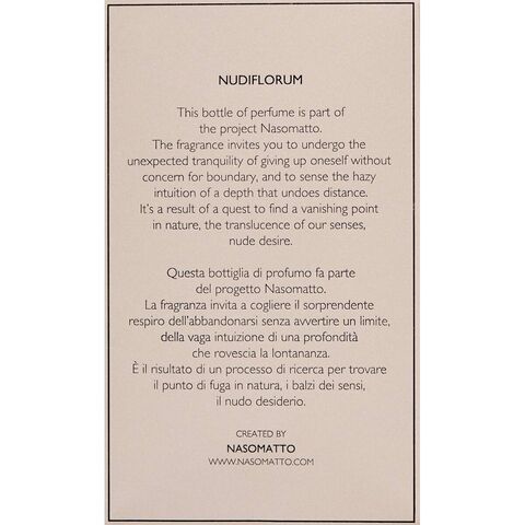 Թող 100% օրիգինալ գեղեցկության ջուր Nasomatto NUDIFLORUM 30 մլ-ը զարմացնի ձեզ։ Այս բացառիկ ունիսեքս օծանելիքը իդեալական է և՛ տղամարդկանց, և՛ կանանց համար։ Բացահայտեք 100% օրիգինալ Nasomatto արտադրանքը!