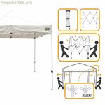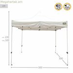 Aktive ապրանքանիշի ծալովի gazebo-ը նախատեսված է բազմակողմանի և պաշտպանված բացօթյա տարածք ապահովելու համար, որը իդեալական է այգիների, տեռասների կամ բացօթյա միջոցառումների համար: Այն ունի մոտավորապես 300 x 300 x 220 սմ չափսեր և հասանելի է նաև այլ տարբերակով՝ 300 x 320 x 300 սմ չափսերով, առաջարկելով հարմարվողական տարբերակներ տարբեր տարածքների և կարիքների համար: Դրա ամուր շրջանակը պատրաստված է պողպատից, որը նյութ է, որը ապահովում է ամրություն և կայունություն անբարենպաստ պայմանների նկատմամբ, մինչդեռ տանիքը և կողային վահանակները պատրաստված են 420D Oxford պոլիեսթերից՝ համակցված PVC տարրերի հետ, ապահովելով ջրամեկուսացում և երկարատև աշխատանք: սպիտակ ծածկույթը ոչ միայն ավելացնում է էլեգանտ և չեզոք տեսք, որը համապատասխանում է ցանկացած միջավայրի, այլև օգնում է արտացոլել ջերմությունը՝ պահպանելով տարածքը զով տաղավարի ստվերի տակ: Բացի այդ, դրա ծալովի դիզայնը՝ կարգավորվող բարձրությամբ, հեշտացնում է տեղափոխումը և պահեստավորումը և թույլ է տալիս կառուցվածքը հարմարեցնել տարբեր օգտագործման և բարձրության նախասիրություններին, բարելավելով դրա ֆունկցիոնալությունը տարբեր իրավիճակներում: Այս տաղավարը նախատեսված է նրանց համար, ովքեր փնտրում են գործնական և դիմացկուն լուծում, որը համատեղում է լավ գեղագիտությունը որակյալ նյութերի հետ, առանձնանում է իր հեշտ հավաքմամբ և բազմակողմանիությամբ բացօթյա օգտագործման համար: Ամփոփելով՝ Aktive ծալովի տաղավարը հարմար ընտրություն է նրանց համար, ովքեր փնտրում են ժամանակավոր կամ մշտական ապաստարան, որը ապահովում է հարմարավետություն և պաշտպանություն արևից կամ անձրևից բացօթյա տարածքներում: