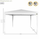 Aktive ծալովի gazebo-ն բազմակողմանի և գործնական լուծում է բացօթյա տարածքների համար, իդեալական է ստվեր և ապաստան ապահովելու համար այգիներում, տեռասներում կամ բացօթյա միջոցառումների ժամանակ: Այս gazebo-ն ունի մոտավորապես 300 x 300 x 250 սմ չափսեր, որոնք ապահովում են բավարար ծածկույթ՝ հարմարավետորեն տեղավորելու սեղաններ և աթոռներ կամ ստեղծելու պաշտպանված տարածք հանգստի և շփման համար: Այն պատրաստված է դիմացկուն և ամուր նյութերից, որոնք ապահովում են կայունություն և երկարակեցություն. այն ներառում է սպիտակ պոլիեսթերային գործվածք, որը պաշտպանում է արևային ճառագայթումից և ապահովում է մաքուր, պայծառ տեսք, մինչդեռ դրա շրջանակը պատրաստված է ամուր պողպատից, որը երաշխավորում է ամրություն և դիմադրություն փոփոխական եղանակային պայմաններին: Բացի այդ, այն ունի պլաստմասե բաղադրիչներ, որոնք հեշտացնում են հավաքումը և ծալումը, դարձնելով այն հեշտ և հարմար օգտագործման համար, երբ այն չի օգտագործվում: Այս խելացի և ֆունկցիոնալ դիզայնը համատեղում է որակյալ նյութերը ընդարձակ չափերի հետ՝ ստեղծելով հաճելի և պաշտպանված միջավայր կենցաղային կամ մասնագիտական օգտագործման համար: Aktive տաղավարը առաջարկում է գործնական լուծում՝ առանց զոհաբերելու ամրությունն ու կայունությունը, հարմար է նրանց համար, ովքեր փնտրում են հուսալի և ֆունկցիոնալ արտադրանք՝ պաշտպանվածությամբ վայելելու բնությունը: