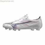 Mizuno Alpha Japan ֆուտբոլային կոշիկները նախատեսված են խաղադաշտում որակ և ֆունկցիոնալություն փնտրող չափահաս խաղացողների համար օպտիմալ աշխատանքի համար: Դրանք ունեն սպիտակ գույնի ունիսեքս դիզայն, վերին մասը պատրաստված է սինթետիկ նյութից, որը համատեղում է թեթևությունն ու դիմացկունությունը, բարելավում է գնդակի վերահսկողությունը և դիմակայում է պահանջկոտ պայմաններին: Հագեցած է կապերի փակման համակարգով, որը ապահովում է անվտանգ, անհատականացված տեղավորում, որը կարևոր է ճկուն շարժումների և արագ ուղղության փոփոխությունների համար: Բնական խոտածածկով ֆուտբոլի համար հատուկ նախագծված փշոտ ներբանը ապահովում է արդյունավետ կպչունություն և կայունություն յուրաքանչյուր քայլի ժամանակ՝ բարելավելով կպչունությունը և արձագանքունակությունը խաղի ընթացքում: Դրանց կառուցվածքը հավասարակշռում է հարմարավետությունն ու կատարողականությունը՝ հարմարվելով չափահաս տղամարդ խաղացողների կարիքներին՝ առանց զոհաբերելու շարժման ազատությունը: Mizuno-ի սպորտային հեղինակությունը արտացոլվում է այս մոդելում, որը համատեղում է տեխնոլոգիան և բարձրորակ նյութերը՝ ապահովելով հուսալի ֆուտբոլային փորձառություն: Ընդհանուր առմամբ, Mizuno Alpha Japan-ը ներկայացնում է տեխնիկական և գործնական ընտրություն այն ֆուտբոլիստների համար, ովքեր կարիք ունեն հատուկ կոշիկների մարզումների և մրցումների համար: