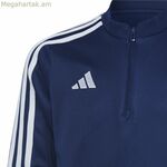 adidas Tiro 23 մանկական սվիտեր առանց գլխարկի-ը սպորտային հագուստ է, որը հատուկ մշակված է երեխաների ֆուտբոլի մարզումների համար, համատեղելով ֆունկցիոնալությունն ու հարմարավետությունը դինամիկ դիզայնի հետ՝ կապույտ: Արտադրված է adidas-ի կողմից, այս սվիտերը ներառում է Aeroready տեխնոլոգիան, որը ապահովում է բարձր շնչառություն, պահպանելով մաշկը չոր նույնիսկ ինտենսիվ ֆիզիկական ակտիվության ժամանակ, ինչը կարևոր է երիտասարդ մարզիկի հարմարավետության համար խաղի կամ մարզման ժամանակ: Դրա առանց գլխարկի դիզայնը հեշտացնում է շարժունակությունը և ապահովում է թեթև, հարմարավետ զգացողություն, որը իդեալական է ջերմությունը պահպանելու համար՝ առանց զոհաբերելու շարժման ազատությունը: Բացի այդ, օգտագործված նյութերի որակը երաշխավորում է ամրություն և դիմադրողականություն հաճախակի օգտագործման նկատմամբ՝ համապատասխանելով հայտնի գերմանական ապրանքանիշի սպորտային չափանիշներին: Այս սվիտերը Tiro 23 շարքի մի մասն է, որը նախատեսված է նրանց համար, ովքեր փնտրում են ֆուտբոլային ելույթների համար նախատեսված տեխնիկական հագուստ, որը կհամապատասխանի ակտիվ երեխաների կոնկրետ կարիքներին: Ընդհանուր առմամբ, adidas Tiro 23 վերնաշապիկը առաջարկում է տեխնոլոգիայի, հարմարավետության և սպորտային ոճի համադրություն, ինչը այն դարձնում է հարմար ընտրություն երիտասարդ խաղացողների համար, ովքեր կարիք ունեն ֆունկցիոնալ, որակյալ հագուստի կանոնավոր մարզումների համար: