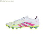 Մեծահասակների համար նախատեսված adidas Predator Pro ֆուտբոլային կոշիկները տեխնիկական կոշիկներ են, որոնք նախատեսված են տարբեր խաղային մակերեսների վրա օպտիմալ կատարողականություն ապահովելու համար, հատկապես շնորհիվ իրենց բազմակի (Multiground) ներբանի, որն ապահովում է հարմարվողական կպչունություն ինչպես բնական, այնպես էլ արհեստական խոտածածկի վրա: Դրանք ունեն առաջադեմ Hybridfeel տեխնոլոգիա, որն ապահովում է բարելավված վերահսկողություն և հարմարավետություն գնդակին դիպչելիս՝ թույլ տալով գերազանց ճշգրտություն փոխանցումների և նետումների ժամանակ: Պատրաստված է կայուն նյութերից, այդ թվում՝ 20% վերամշակված բովանդակությունից, այս կոշիկները արտացոլում են Adidas-ի բնապահպանական պարտավորությունը՝ առանց վտանգելու դիմացկունությունը կամ ֆունկցիոնալությունը: Դրանց սպիտակ դիզայնը համատեղում է գեղագիտությունն ու բազմակողմանիությունը, հարմար է այն ֆուտբոլիստների համար, ովքեր մարզումների և խաղերի համար մասնագիտական սարքավորումների կարիք ունեն: Որպես մեծահասակների համար նախատեսված մոդել, էրգոնոմիկ կառուցվածքը և վերջնական մշակումը ապահովում են անվտանգ և կայուն տեղավորում՝ նվազեցնելով վնասվածքի ռիսկը և բարելավելով ընդհանուր խաղային կատարողականը: Predator Pro-ն պատկանում է Adidas-ի բարձրակարգ շարքին, որը ներառում է նորարարություններ, որոնք հեշտացնում են գնդակի վերահսկողությունը և արագ շարժումները, ինչը կարևոր է այն խաղացողների համար, ովքեր ձգտում են առավելագույնի հասցնել տեխնիկան և հարմարավետությունը խաղադաշտում: Այս կոշիկները լավ ընտրություն են նրանց համար, ովքեր կանոնավոր ֆուտբոլային մարզումների համար պահանջում են բազմակողմանի, արդյունավետ և շրջակա միջավայրի համար պատասխանատու կոշիկներ: