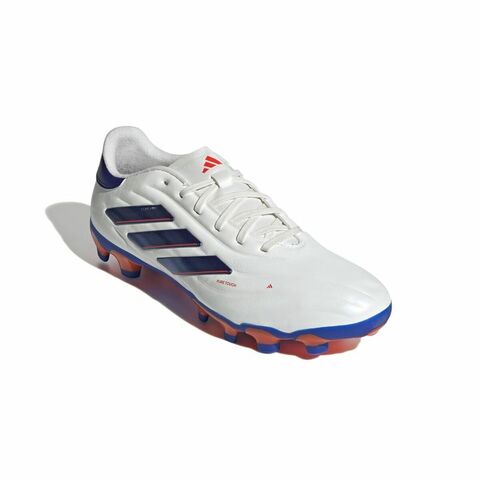 Adidas Copa Pure II Pro մեծահասակների ֆուտբոլային կոշիկները նախատեսված են այն խաղացողների համար, ովքեր փնտրում են ավանդույթի և առաջադեմ կատարողականի օպտիմալ համադրություն խաղադաշտում: Հայտնի Adidas ապրանքանիշի այս առանձնահատուկ մոդելը առանձնանում է դասական կոշիկներով, որոնք ապահովում են հարմարավետ, բնական տեղավորում՝ բարելավելով գնդակի վերահսկողությունը և հարմարավետությունը խաղի ընթացքում: Դրանք ներառում են ավանդական ժանյակավոր փակում, որը ապահովում է անվտանգ, անհատականացված տեղավորում՝ կանխելու համար անցանկալի շարժումները: Միաձուլված մաշկի վերին մասը տեխնիկական նորարարություն է, որն առաջարկում է մակերես, որը և՛ դիմացկուն է, և՛ ճկուն, հարմարվում է ոտնաթաթի ձևին և դիմակայում է հաճախակի քերծվածքներին՝ երաշխավորելով դիմացկունություն և գերազանց հպում: Այս կոշիկները նախատեսված են այն մեծահասակ խաղացողների համար, ովքեր կարիք ունեն հուսալի կոշիկների՝ խոտածածկի վրա գերազանց արձագանքով, միաժամանակ պահպանելով այս տեսակի կոշիկների դասական արժեքները հարգող դիզայն: Տակդիրը ներառում է տեխնոլոգիաներ՝ արագ շարժումների և ուղղության փոփոխությունների ժամանակ կպչունությունն ու կայունությունը բարելավելու համար, ինչը կարևոր է մրցակցային ֆուտբոլի համար: Ամփոփելով՝ Adidas Copa Pure II Pro-ը համատեղում է ավանդույթը, դիմացկունությունը և տեխնիկական կատարողականությունը, ինչը դրանք դարձնում է հարմար ընտրություն նրանց համար, ովքեր գնահատում են որակը և կատարողականը դաշտում յուրաքանչյուր գործողության մեջ: