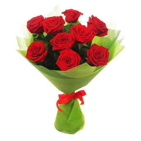 9 հատ ալ կարմիր վարդերով ծաղկեփունջ: Չափսերը Բարձր./Լայն./Երկ. 70x25x25սմ: